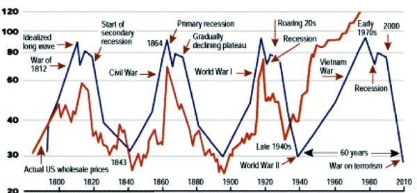 Aquí en esta gráfica tenemos la demostración empírica del ciclo Kondratiev y como el capitalismo no se ha librado de los ciclos.